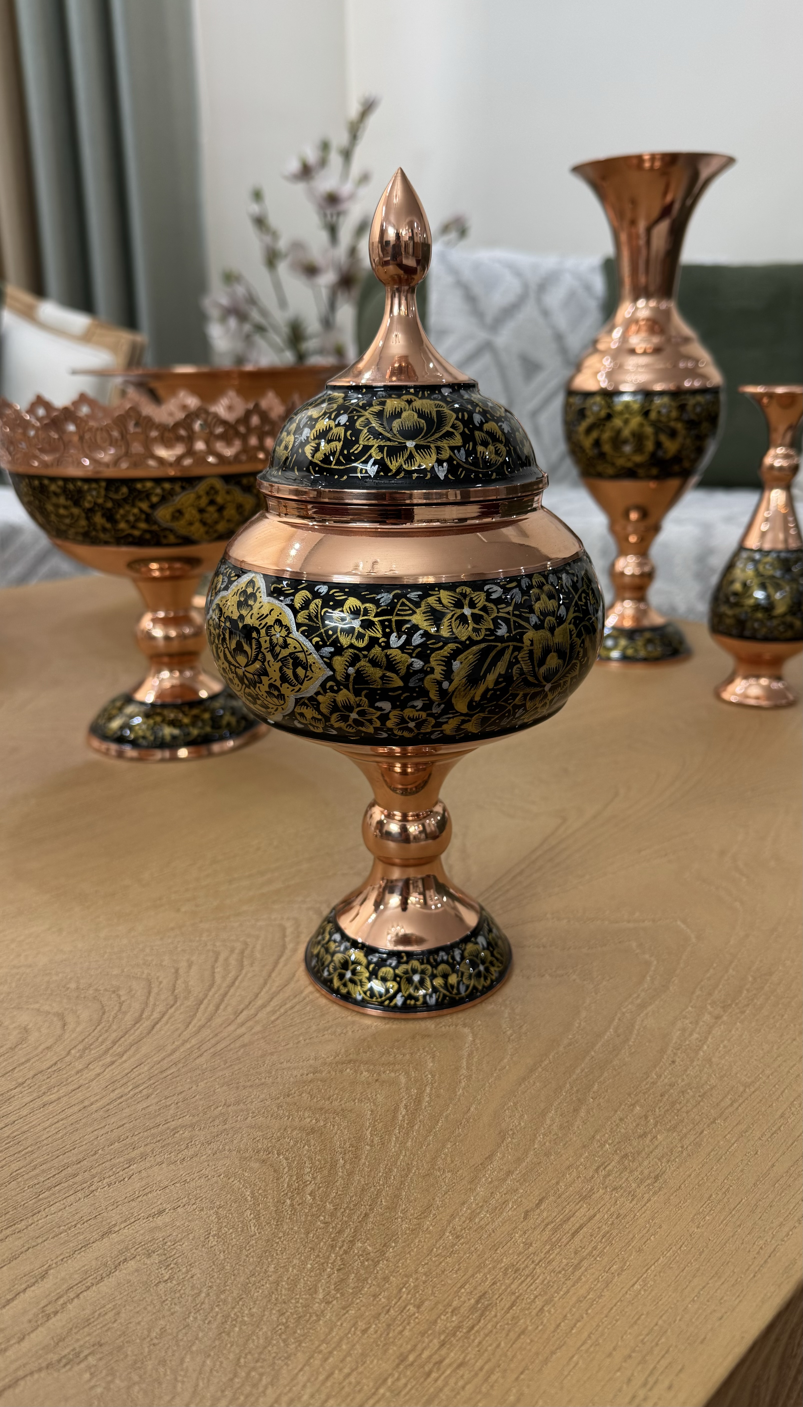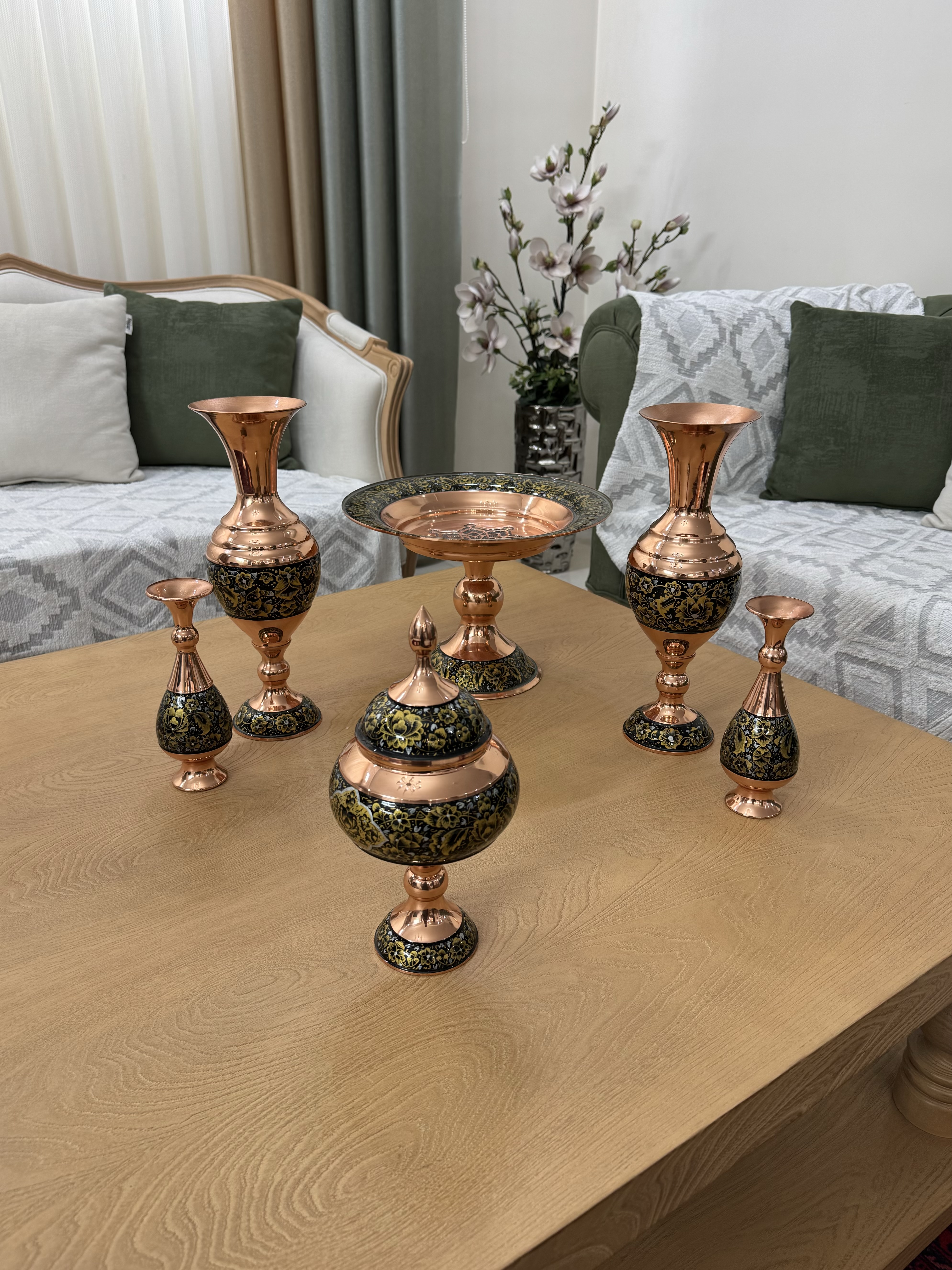 جنس بدنه از مس است که پس از خم کاری و نقاشی با لایه محافظ پلی استر پوشانده شده است./با ضمانت معتبر ثبات رنگ/کیفیت ساخت عالی/مناسبترین قیمت بازار