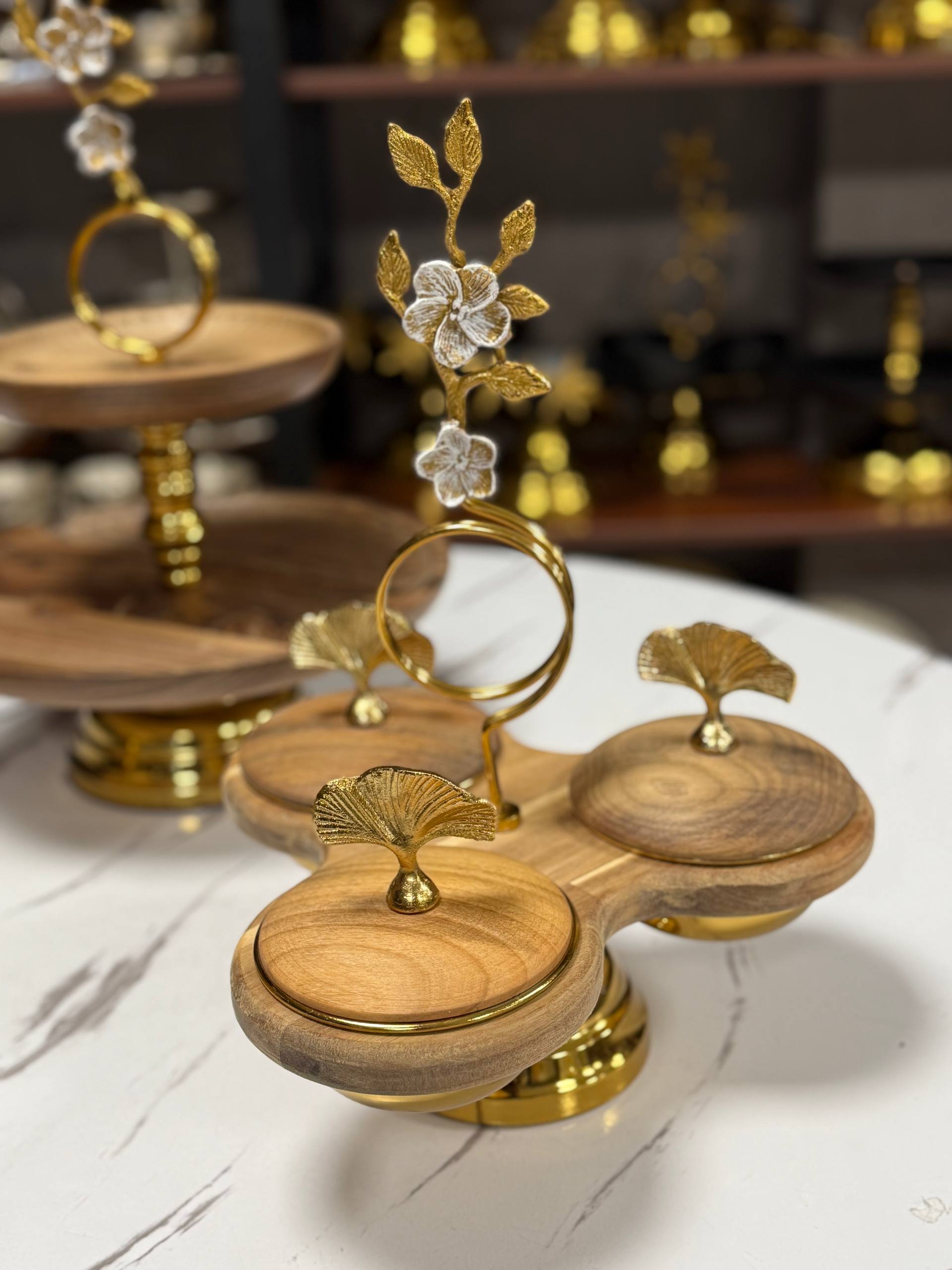 ست شامل پنج تکه میوه خوری،شیرینی خوری، آجیل خوری و شکلات خوری و اردو خوری سه خانه