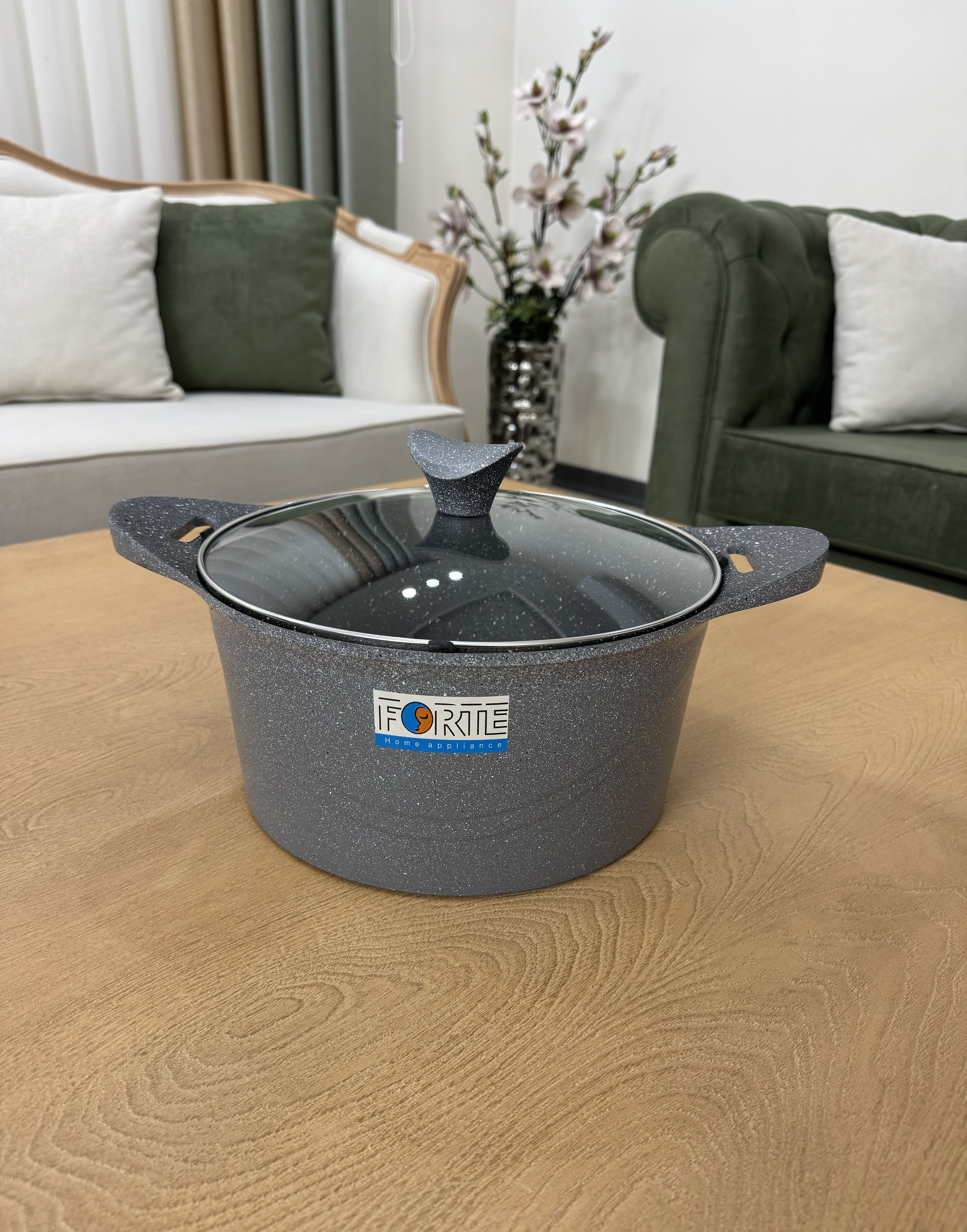 قابلمه گرانیت طرح آیکون با طراحی ظریف و مدرن، به یک اثر هنری در آشپزخانه تبدیل شده است. رنگهای مات و سایه های هماهنگ گرانیت، فضایی آرامشبخش ایجاد میکنند و حس گرمی و اصالت را به محیط آشپزی اضافه میکنند.